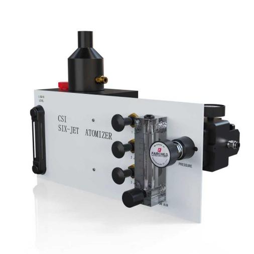 该系统具有一个内置的压力调节器和压力表,以及作为一个独立的稀释系统。内置压力调节器,6个喷嘴独立可控,每喷嘴颗粒浓度>10⁷个/cm³,总流量6.5L/min,适用于PIV/LDV测量等实验外部控制允许你通过六粒子产生雾化射流可供选择,每个生产颗粒浓度大于 10 7 个每立方厘米,在 6.5 升/分钟(名义在 25 psig 的压力),允许粒子数浓度和颗粒的总输出进行调整。该系统可用于从几乎任何液体产生的粒子,甚至可以从溶液或悬浮液中固体粒子的产生。稀释空气流量的精确控制,使得在输出浓度进一步控制和从一个解决方案生成有助于干燥的固体颗粒
