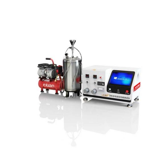 牙科手机综合性能测试仪是一种用于检测牙科手机(如高速气涡轮手机、低速手机等)性能的专用设备,广泛应用于牙科诊所、维修中心及医疗器械生产厂商,以确保牙科手机在转速、气压、水流、喷雾、灯光等方面符合临床使用标准。该设备通过标准化测试保障治疗安全性和器械可靠性,是牙科设备质量管理的重要工具。