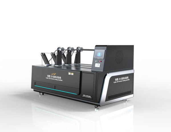 线缆2D扭转试验机用于电线电缆2D扭转疲劳测试。线缆2D扭转试验机是将产品一端固定在扭转治具上,另一端固定在左右活动治具上,在一定角度、速度、次数、拉力来回往复扭转测试。线缆2D扭转试验机参考TV莱茵2Pf02577/08.16等标准要求。