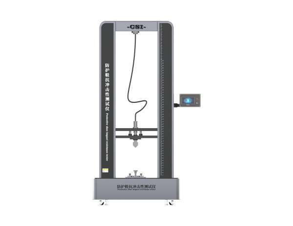 防护鞋抗冲击性测试仪以冲击锤从设定的高度落下,以一定的焦耳能量冲击安全性鞋或防护性鞋的鞋头,冲击后通过测量事先放置在安全性鞋或防护性鞋的鞋头内雕塑粘土的低高度值,以其大小评估防护鞋鞋抗冲击性能