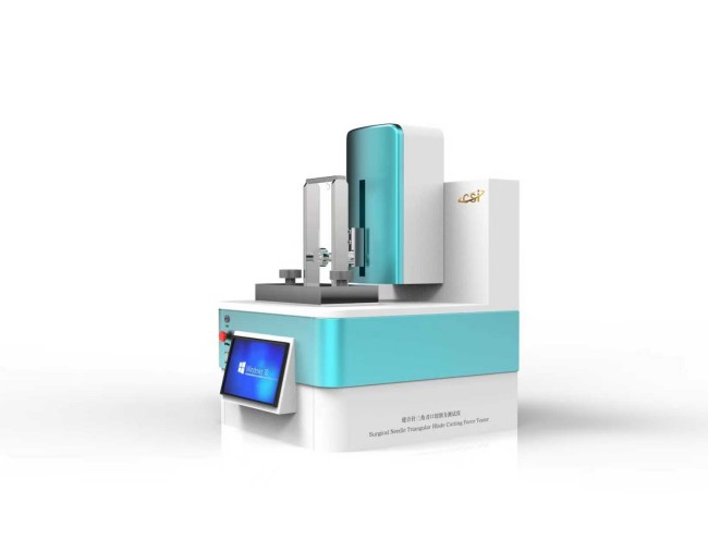 切割力量化:将缝合针固定于夹具,以恒定速度推动刃口垂直切割标准缝合线,高精度传感器实时捕捉并记录切割力值。