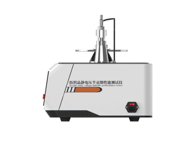 纺织品静电压半衰期性能测试仪用于实验室条件下测定纺织原料和制成品含纤维、纱线、织物、地毯、装饰织物的静电性能,也可用来测定其它片、板状材料如纸张、橡胶、塑料、复合板材等的静电性能。仪器主机由电晕放电装置探头和检测系统组成。利用给定的高压电场,对被测试样定时放电,使试样感应静电,从而进行静电电量大小、静电压半衰期、静电残留量的检测,以确定被测试样的静电性能。