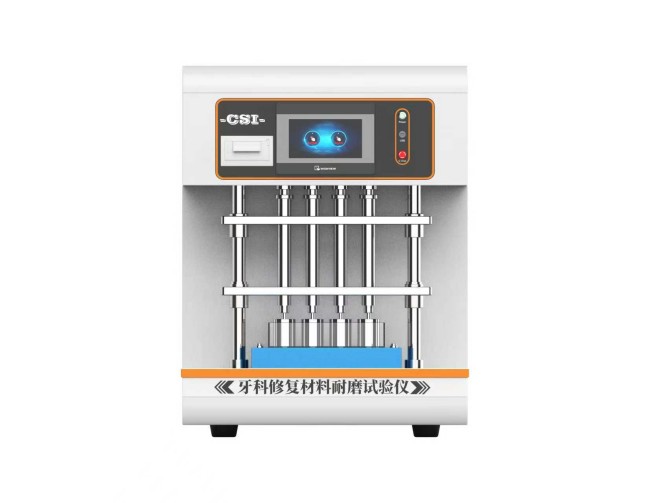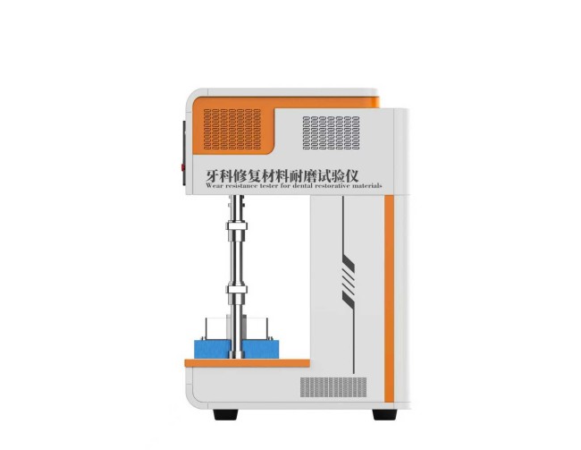 材料在模拟口腔环境下的耐磨性能,其测试原理是通过牙科修复材料耐磨试验仪在80N垂直载荷、1Hz频率下,使用44μm PMMA微珠作为磨损介质,对材料进行400,000次循环的往复磨损,终通过体积损失和深度量化其耐磨性。