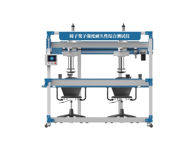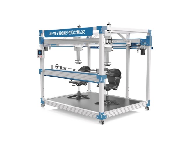 椅子凳子强度耐久性综合测试仪用于对办公椅的强度,耐久性进行测试,座面、椅背耐久性、扶手联合测试,适用于各类椅的座位、靠背静载荷测试,座面前边缘静载荷测试,也可进行座椅和椅背综合疲劳测试,完成装夹后测试过程自动完成,出现故障系统自动停止动作保护。