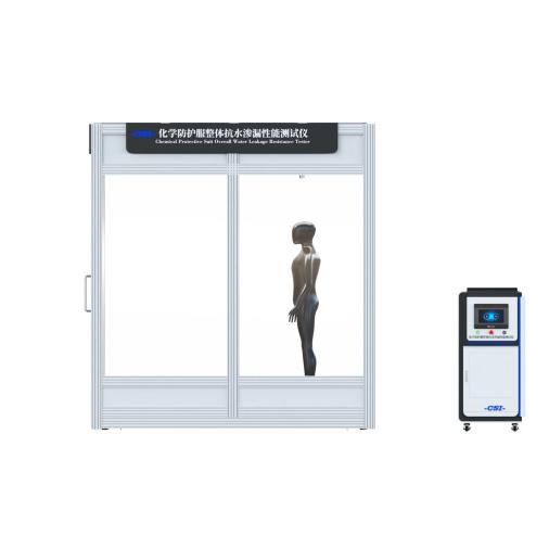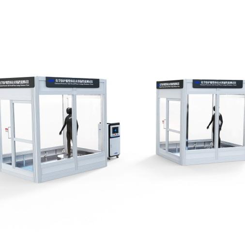 本仪器从不同角度用水枪冲刷化学防护服装,测定服装内部渗漏情况。