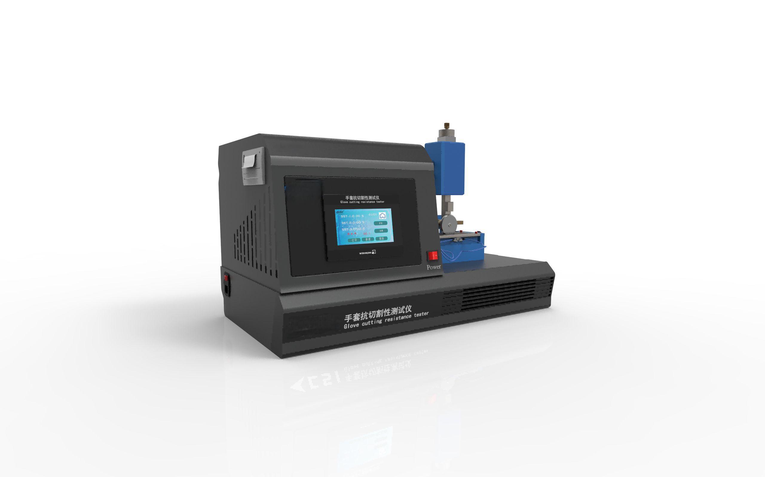 在测试中,手套会被放置在夹具上,并且切割器会以一定的速度和压力移动,模拟切割手套的情况。测试机会记录手套的耐切割时间、切割深度等数据,以评估手套的抗切割性能。