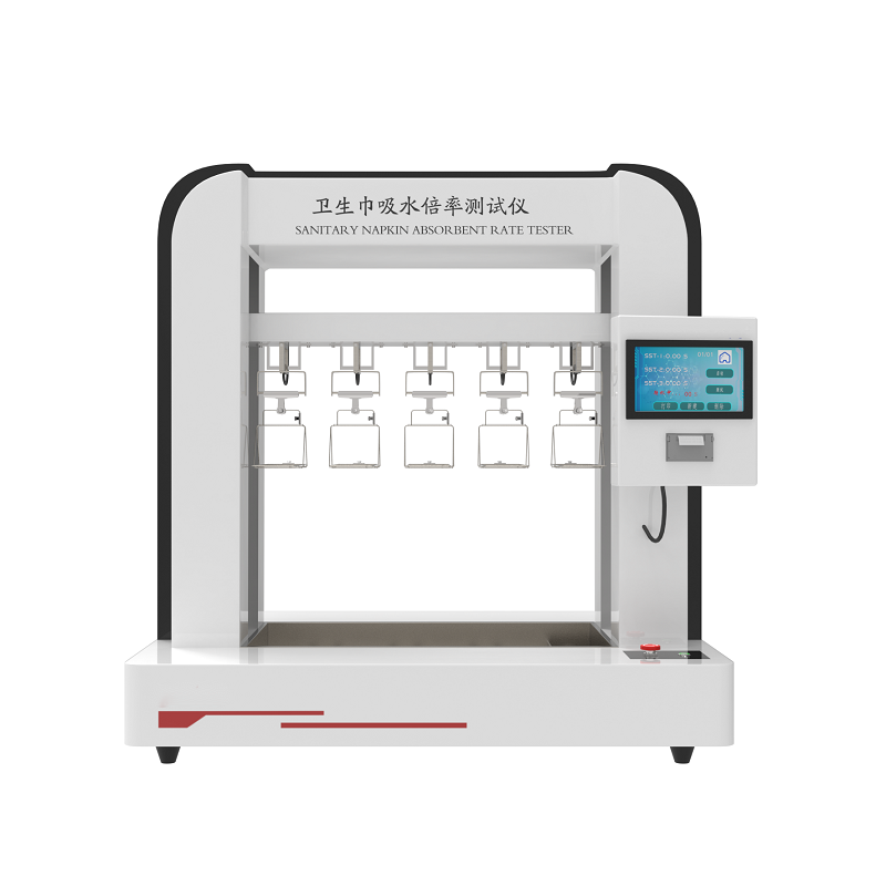 卫生巾吸水倍率测定仪根据国标GB/T 8939设计开发的一款卫生巾吸水倍率的检测仪器,主要用于女性生理性卫生巾(含卫生护垫)。吸水倍率是通过吸收后质量增加的质量与吸收前质量的比值,它反映产品浸泡一段时间后的吸水总量,吸水倍率越大说明吸收能力越强。吸水倍率的提高,主要是吸收层中加入高分子树脂,但是过度的追求高吸水倍率,会提高生产成本,同时也可能造成资源的浪费。因此卫生巾生产厂家在检测产品吸水倍率指标是否合格的同时,也可根据测试数据控制成本,以免造成成本浪费。