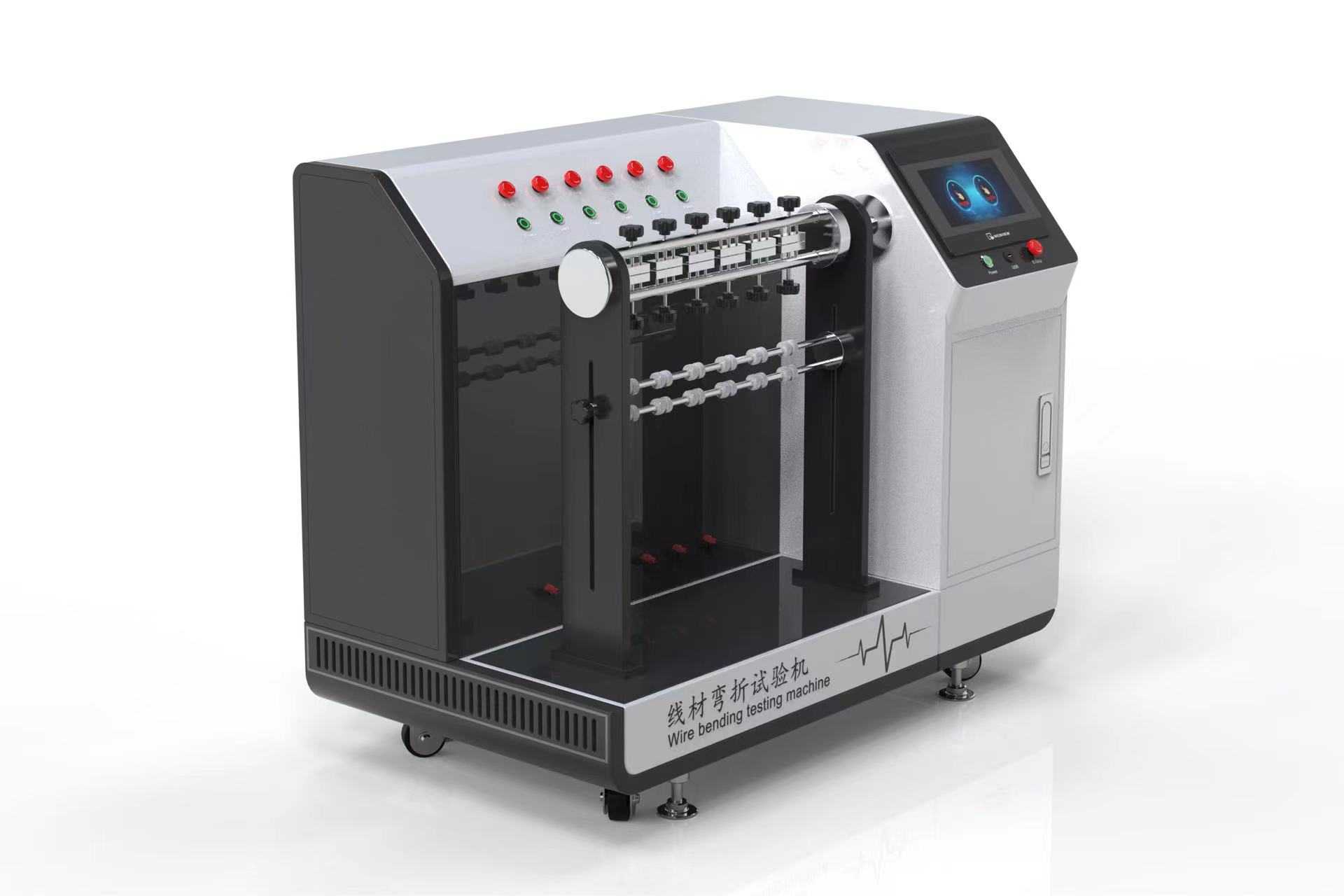 弯折角度显示及调节:触摸屏设置角度,偏心轴试验速度:10-60/次/分(旋钮调速,