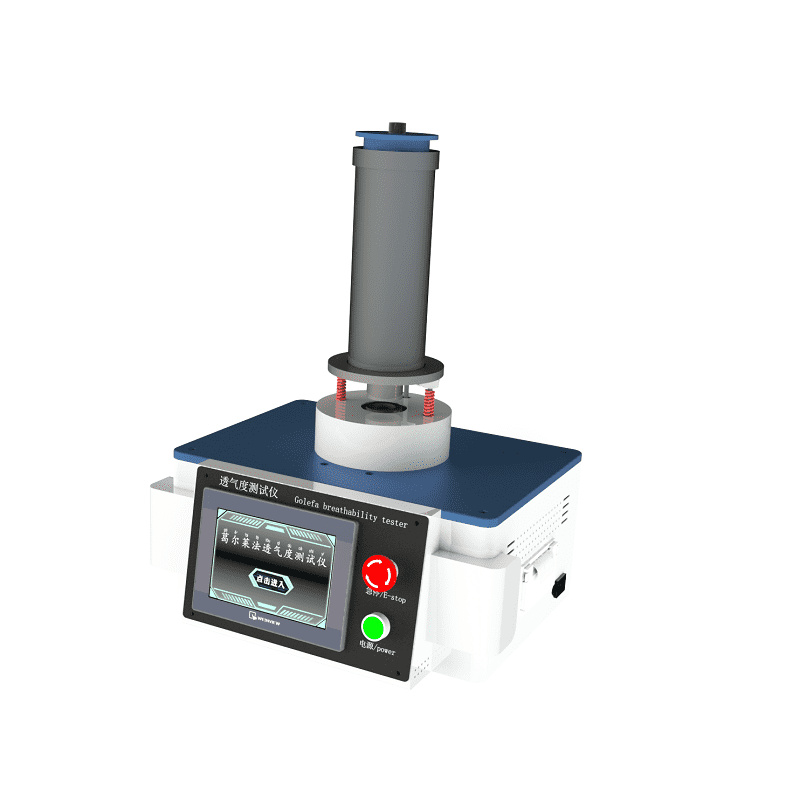透气度测试仪(葛尔莱法)是根据葛尔莱试验机测量法,对纸张及纸板的透气度和毛类织物等的通气性进行评价的葛尔莱式透气度试验机。内筒在重量的作用下空气被压缩,一定量的空气通过被固定在夹板上的试片,测定其必需的时间。测定方法有手动式秒表测定法以及自动计时器测定法两种可供选择。