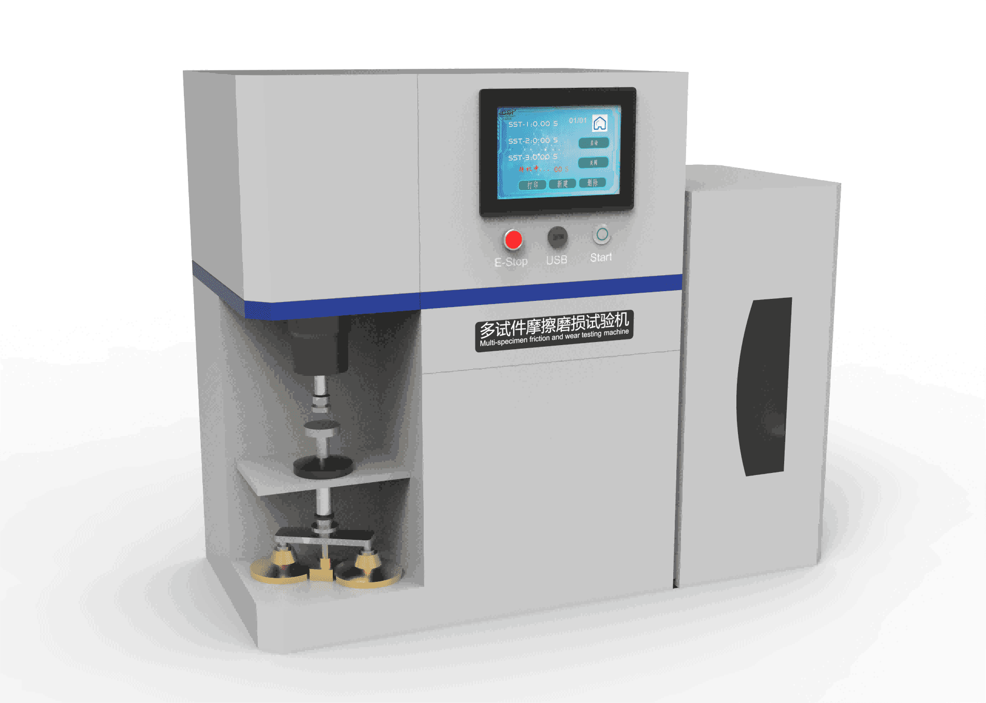 多试件摩擦磨损测试仪是一台多功能的摩擦磨损测试仪,具有多种样品适配器,可完成20多种不同几何形状试件样品的测试,可广泛应用于评估原料、涂层、润滑油和PV等原料并决定其动态和静态的摩擦系数。测试参数和数据可通过数字控制系统实时观察和打印。