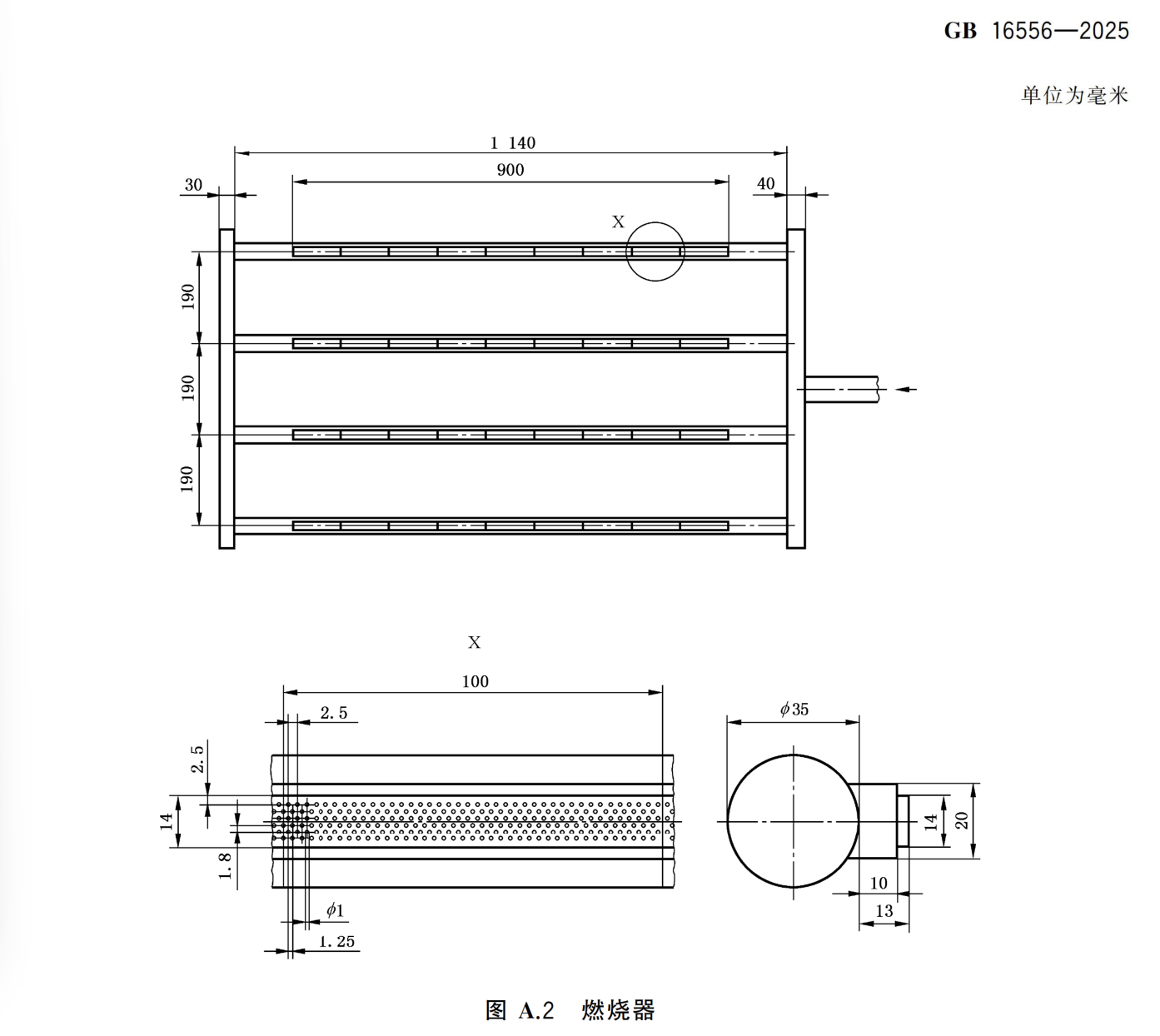 标准燃气要求:燃气由 95%(体积分数)以上丙烷气和空气组成,以 150 kPa 的压力通过直径 4.5 mm 的喷头喷出,且与压力 500 kPa 由直径6 mm 喷头喷出的压缩空气混合;