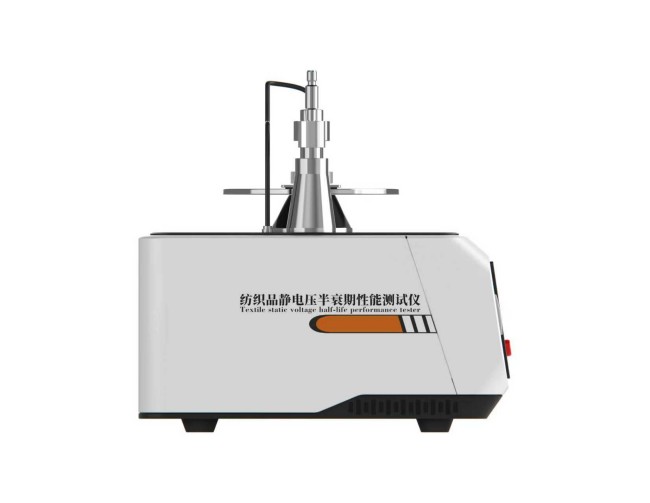 纺织品静电压半衰期性能测试仪用于实验室条件下测定纺织原料和制成品含纤维、纱线、织物、地毯、装饰织物的静电性能,也可用来测定其它片、板状材料如纸张、橡胶、塑料、复合板材等的静电性能。仪器主机由电晕放电装置探头和检测系统组成。利用给定的高压电场,对被测试样定时放电,使试样感应静电,从而进行静电电量大小、静电压半衰期、静电残留量的检测,以确定被测试样的静电性能。