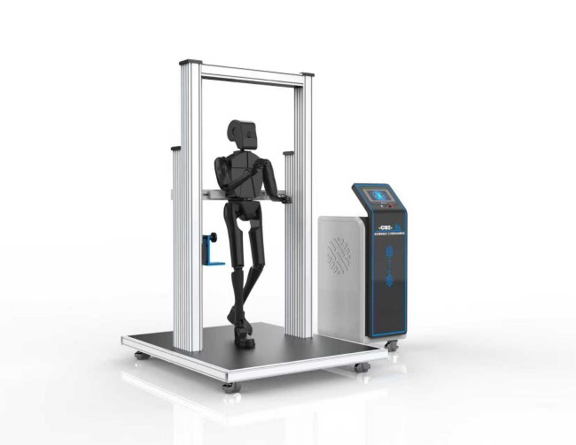 本设备是根据GB/T 37704-2019标准条款7.3.3要求制作,用于测试康复训练机器人胯环节,膝关节,脚部关节在一定的扭矩下测试。本机是电子技术与机械传动相结合的材料试验机,对扭矩的测量和控制有较高的精度和灵敏度,该设备主要由电机,扭力传感器,PLC控制器,操作屏等组成。