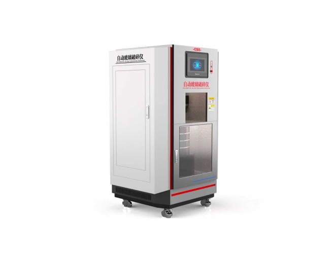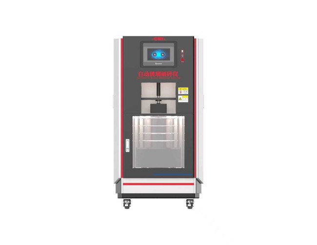 玻璃试样放入碾体中,杵自动下降把玻璃制品击打成碎块,设备自动振动套筛,合格样品与玻璃颗粒废弃物分开收集。