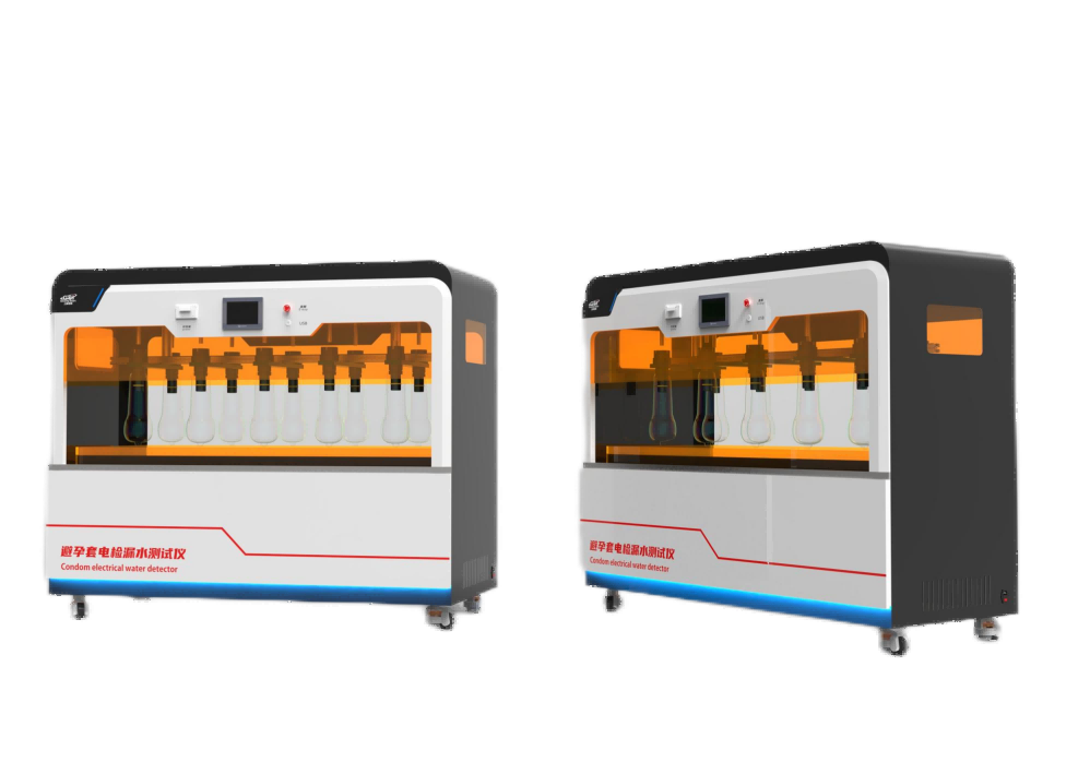 安全套避孕套针孔漏水检查台适用于安全套避孕套,安全套避孕套针孔漏水试验,符合 GB7544-2019天然胶乳橡胶安全套避孕套技术要求与试验方法。避孕套针孔漏水测试仪是一种专门用于检测避孕套是否有针孔漏水的设备。它通常由一个容器和一个气泵组成。使用时,将避孕套放入容器中,然后用气泵将一定压力的空气注入容器。如果避孕套有针孔漏水,空气会从针孔处逸出,从而产生气泡或其他指示,以便用户可以检测到问题并及时更换避孕套。这种测试仪可以帮助确保避孕套的完整性和可靠性,从而提高避孕效果工位测试空间,可同时进行试样测试旋转式试验台,方便观察监测不同试样结果漏斗式填充口,用户操作更便捷